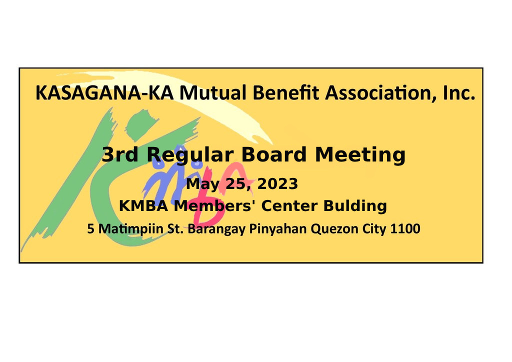 We would like to inform you that our 3rd Regular Board Meeting will be held on May 25, 2023 at KMBA Membe... Read more...